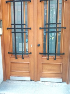 Budapest, Rákóczi úti társasház szocreál bejárati kapu kovácsoltvas kapuvá alakítása